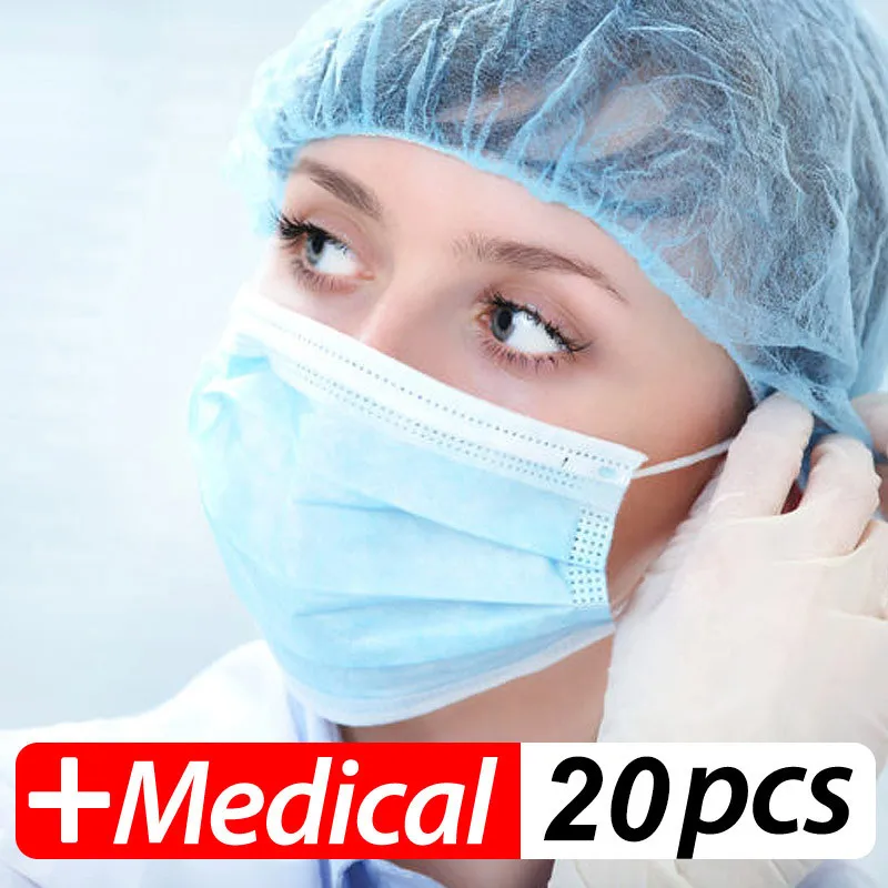 20Pcs Medical Disposable 3-Layers Non-woven Face Mask Anti-Dust Anti-bacterial Earloop Breathab Medical Surgical Face Mouth Mask |