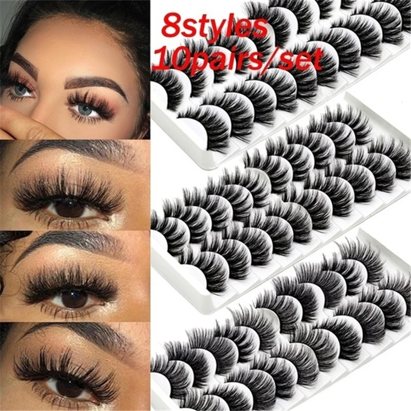 8 Styles 10Pairs Multipack Natural False Eyelashes Soft Cross Mink Lashes Multilayer Fake Mink |
