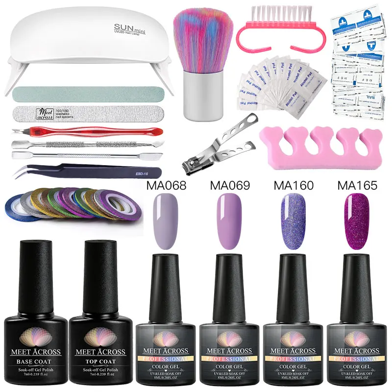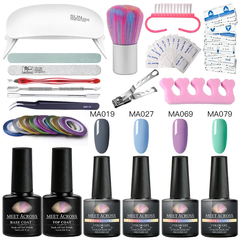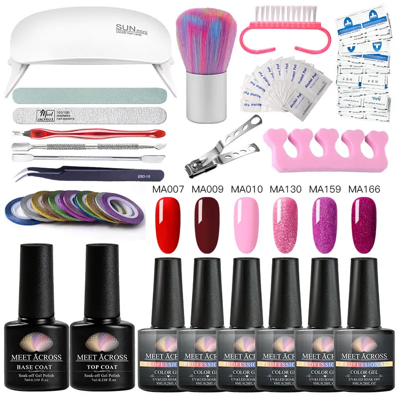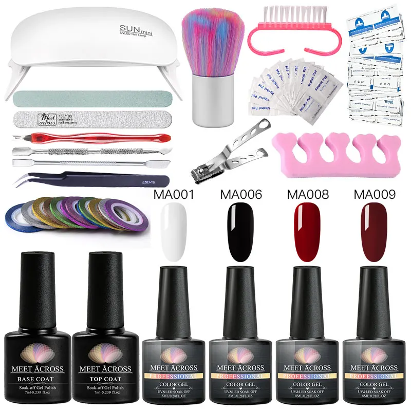 | MEET ACROSS UV LED Lamp For Manicure Set Semi Permanant Gel Nail Polish Top and Base Varnish Nail File Nail Art Tools Set |