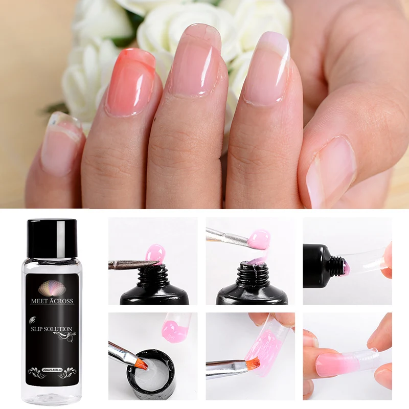 | MEET ACROSS Poly Uv Gel Nail Varnish Slip Solution Set Odorless Alcohol Substitutes Brushes Glass Jar kit Nail polish |