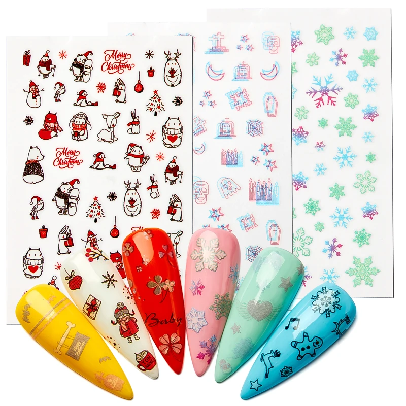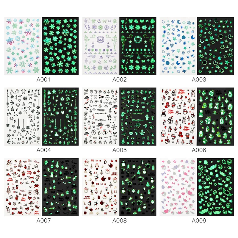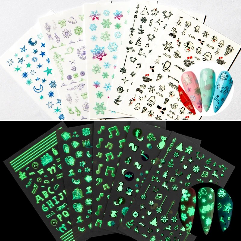 | 1 Sheet Luminous Christmas Snowflake 3D Nail Sticker Mixed Patterns Nail Foil Transfer Decals Nail Art DIY Decor |