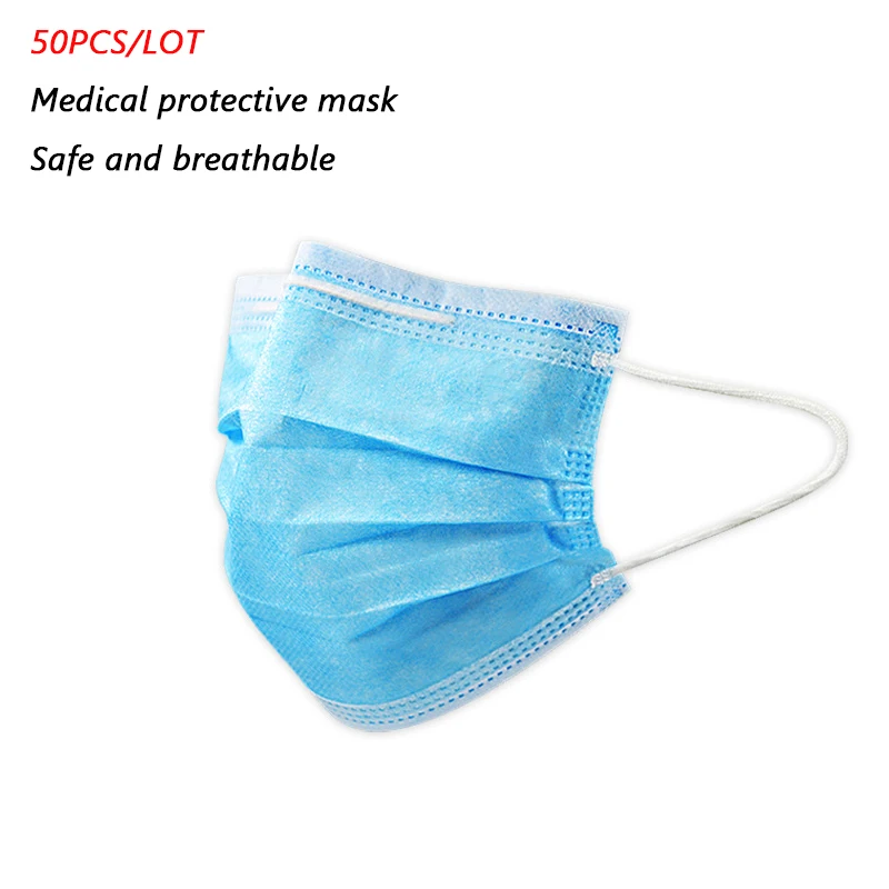| 50Pcslot Medical Disposable 3-Layers Non-woven Mouth Face Mask Hypoallergenic Anti-Dust Anti-bacterial Earloop Medical Mask |