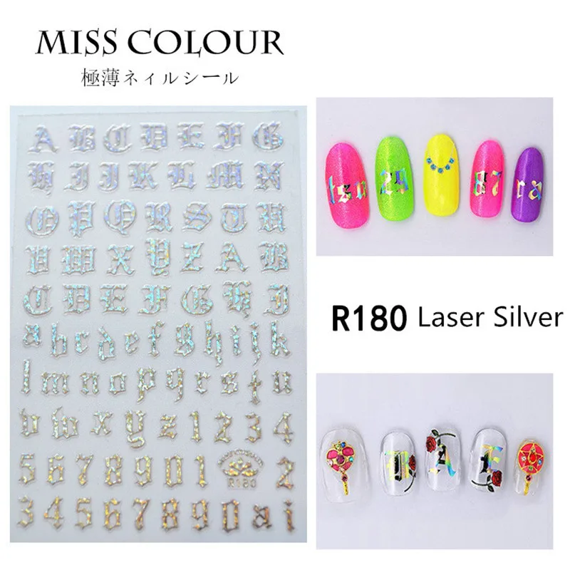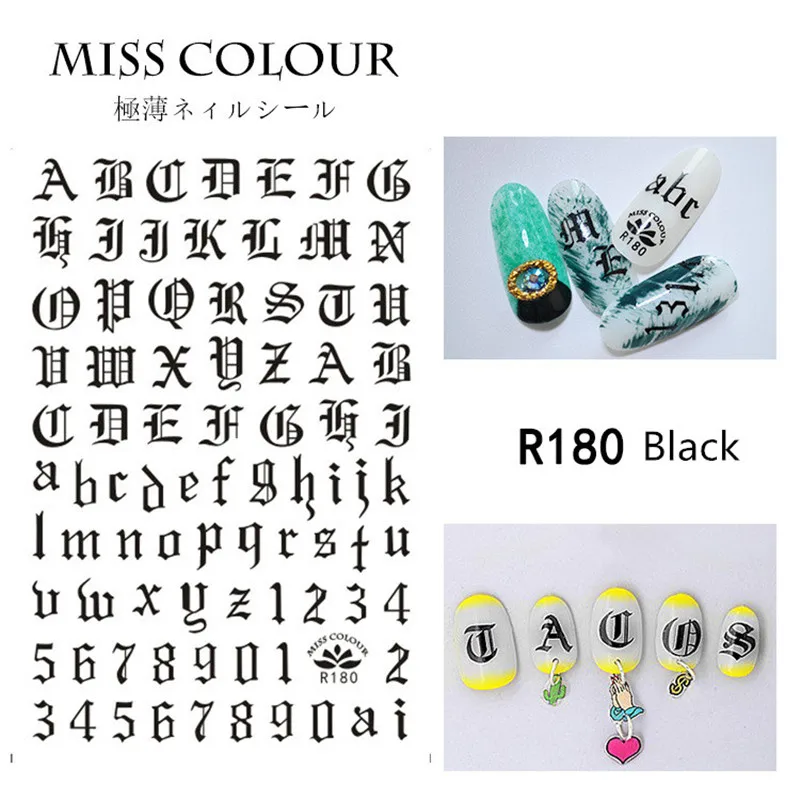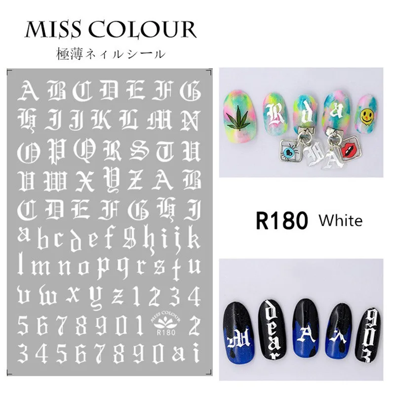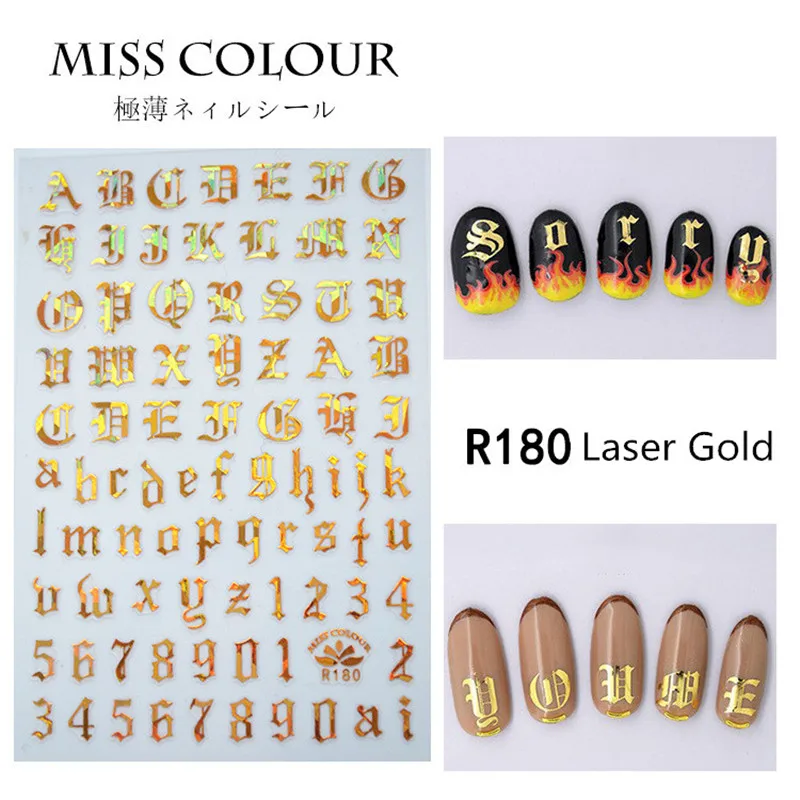 | 4pcs Nail Art Sticker Cool English Letter Number Nails Slider Decorations Accessoires Manicure Foil Adhesive Wraps Polish |