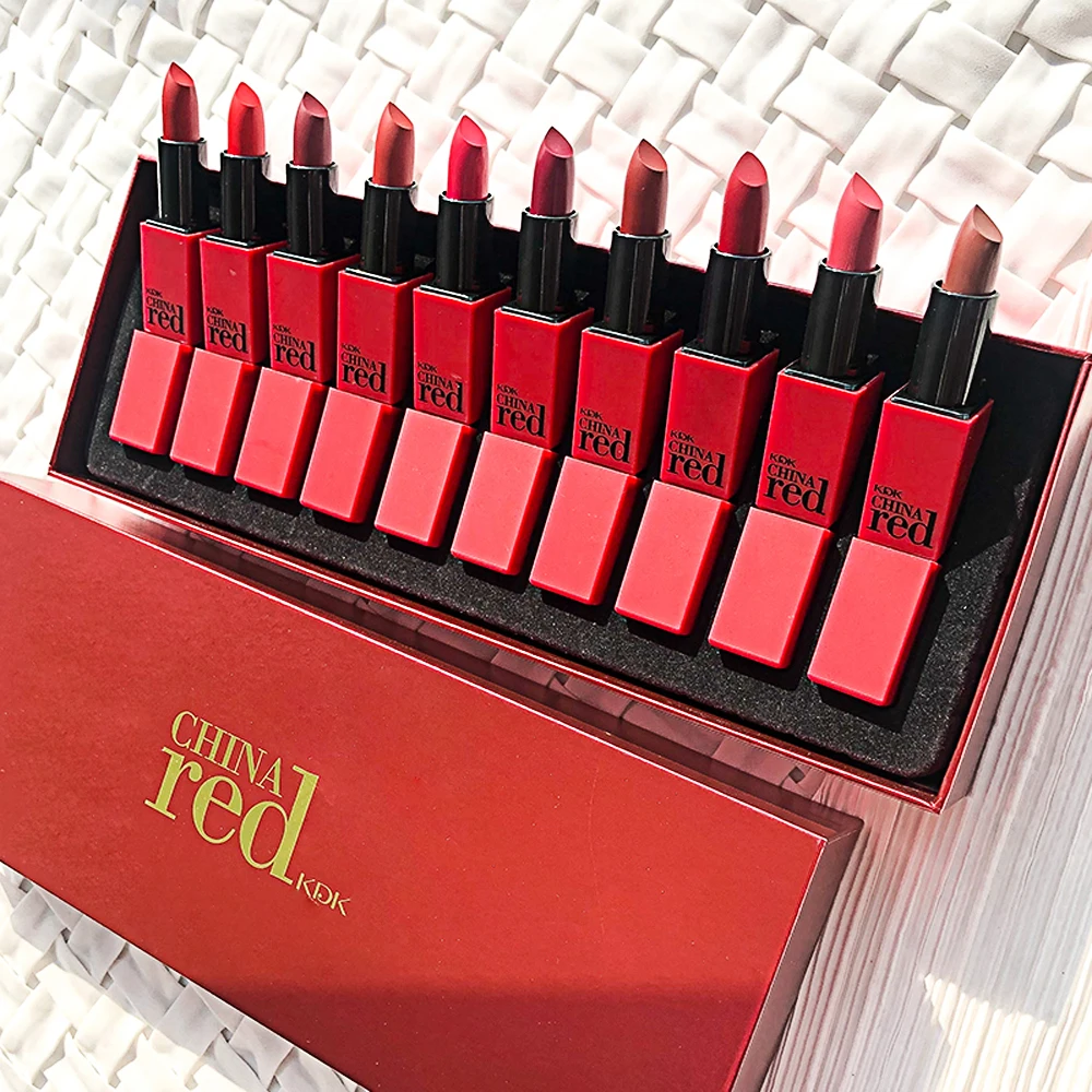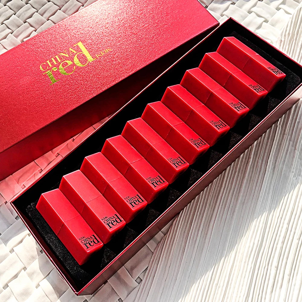 10-Color Chinese Red Lipstick Gift Set Moisturizing Satin Fog Sense Lipstick Set of Gift Bag |