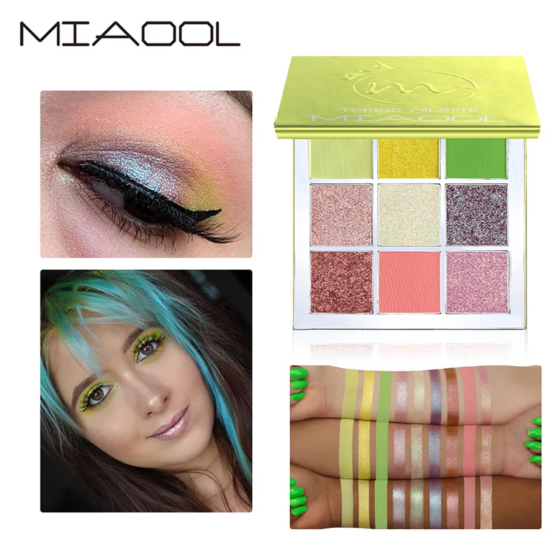 Best Price Comparison With Miaool 9-Color Fluorescence Green Diamond Sequin Eye Shadow Pearly Lustre Matte Convenient Europe and America Makeup