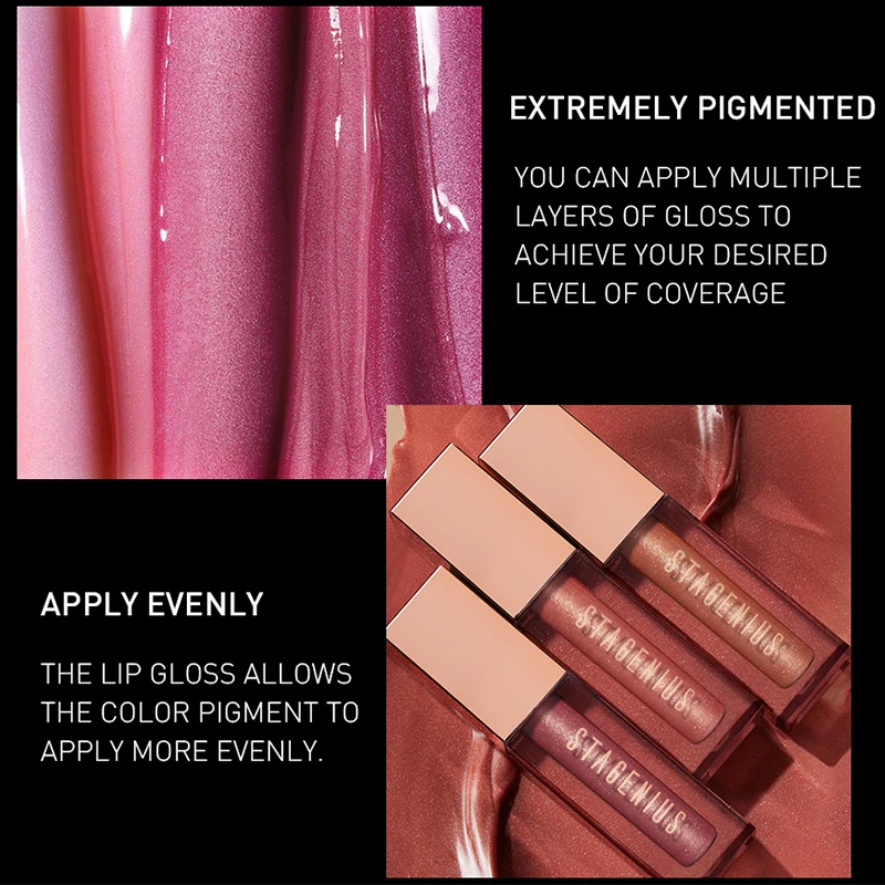 STAGENIUS Liquid Lipgloss Waterproof Long-lasting Non Stick Shimmer Moisturizer Lip gloss Glitter Makeup Lips
