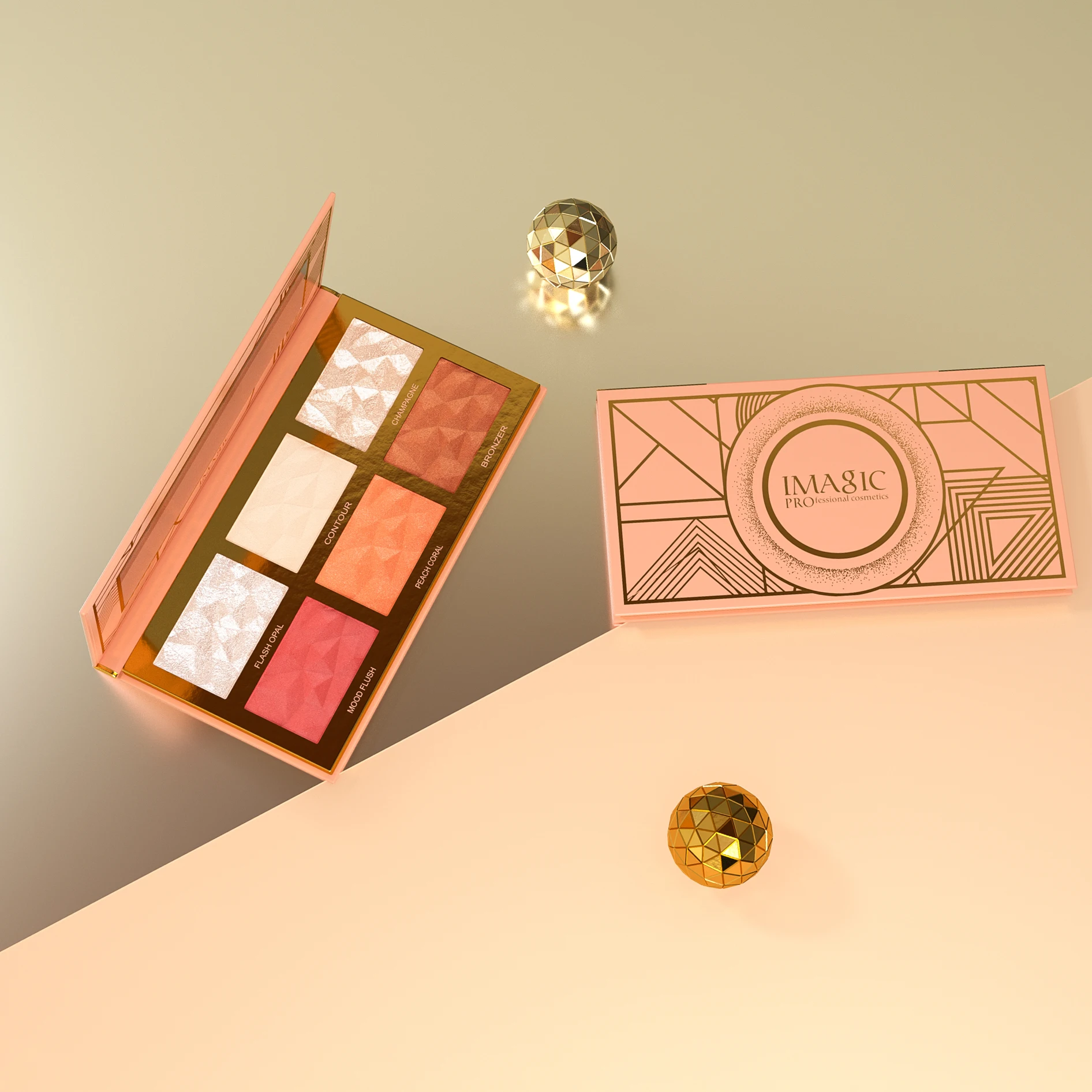 IMAGIC New 6-color Blend Highlight Highlighting Blush Palette Naturally Brightens Skin Tone |