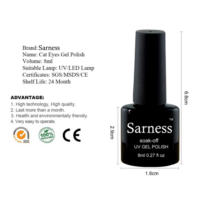 | Sarness Chameleon 3D Cats Eye Nail Gel Polish Magnetic Nails Gel Uv Colors Soak Off Esmaltes Permanentes UV Gel Nail Varnish |