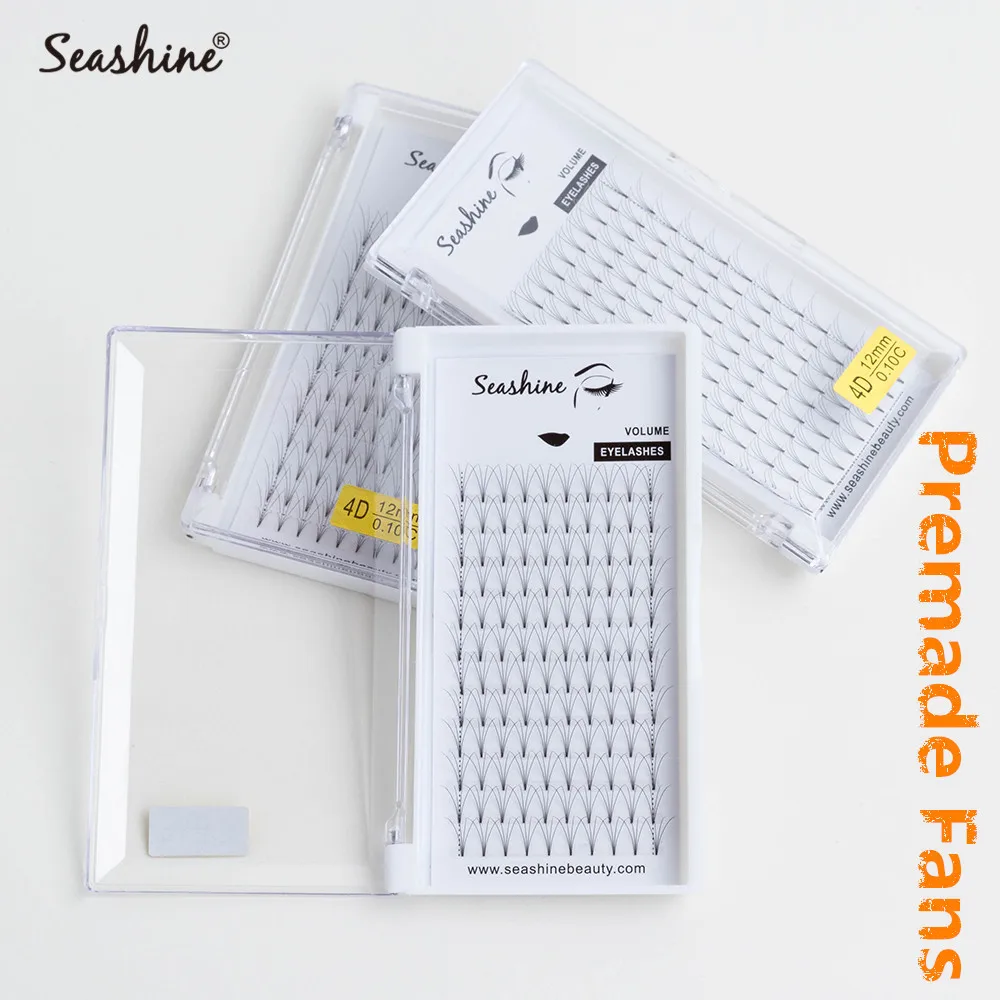 | Seashine Russian Volume Lashes Extensions 1 Tray Short Stem Premade Fans 0.05mm Thickness 8-18mm Length Eyelashes Extensions |