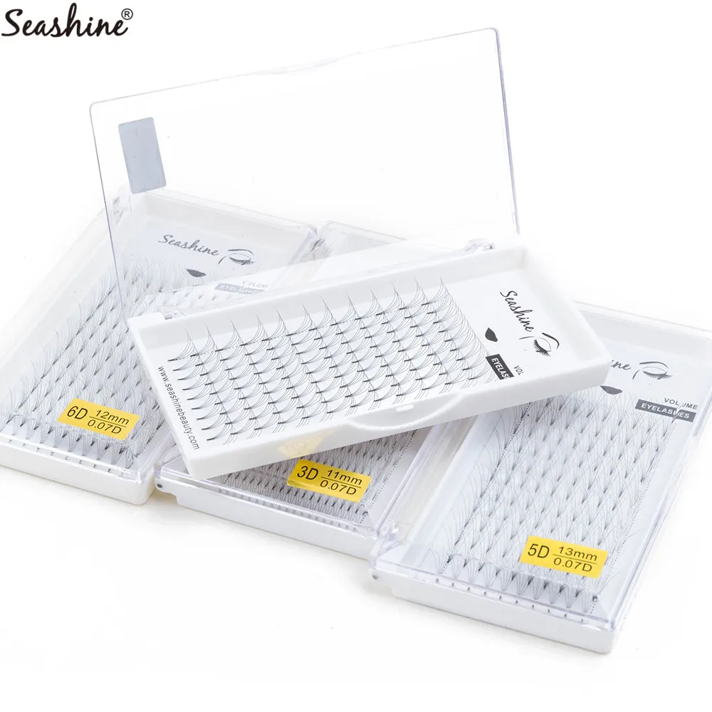 Best Price Comparison With Seashine Russian Volume Lashes Extensions 1 Tray Short Stem Premade Fans 0.05mm Thickness 8-18mm Length Eyelashes Extensions