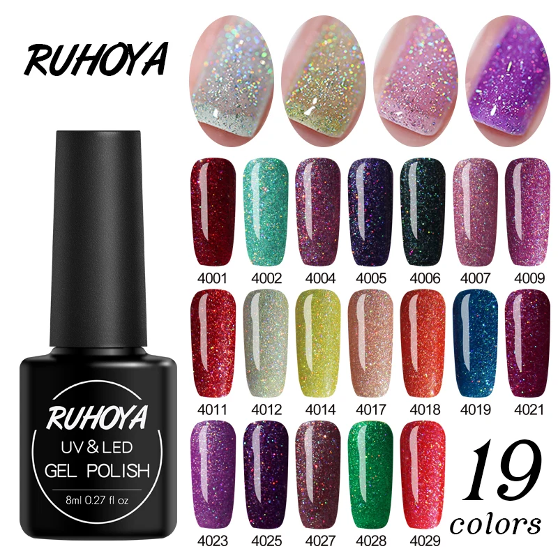 Best Price Comparison With Ruhoya Giltter Bling Nail Polish 8ml Neon Colors Gellak Vernis Semi Permanent Lucky Lacquer Gellak Nail Varnish Hybrid Nail Art