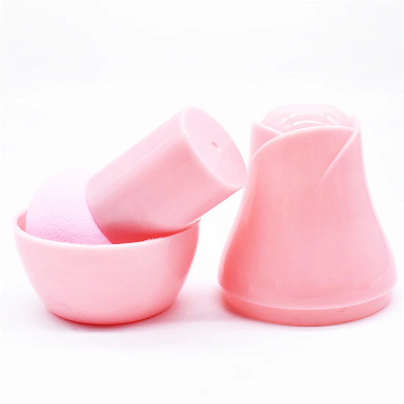 | 1pc make up sponge portable colorful mushroom head dry & wet dual purpose powder puff clear with floral cosmetic package |